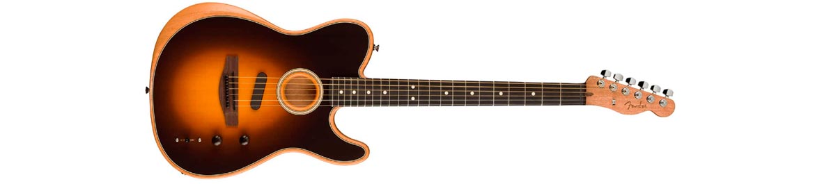 O Fender Acoustasonic Telecaster é um violão híbrido que combina o corpo de uma guitarra Telecaster com um captador de som acústico. O instrumento é projetado para músicos que desejam tocar tanto músicas elétricas quanto acústicas em um único instrumento. O preço pode variar dependendo das características do instrumento.